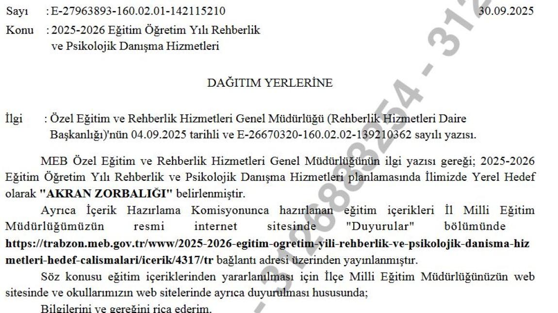 2025-2026 Eğitim Öğretim Yılı Rehberlikve Psikolojik Danışma...MEB Özel Eğitim ve Rehberlik Hizmetleri Genel Müdürlüğünün ilgi...